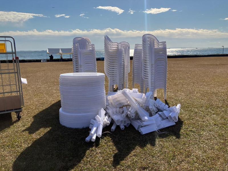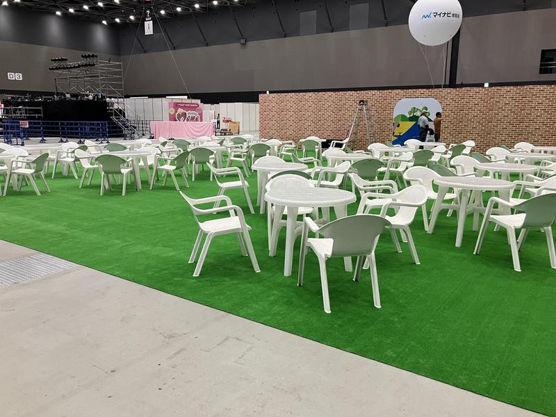 マルシェ・キッチンカー横の休憩エリア